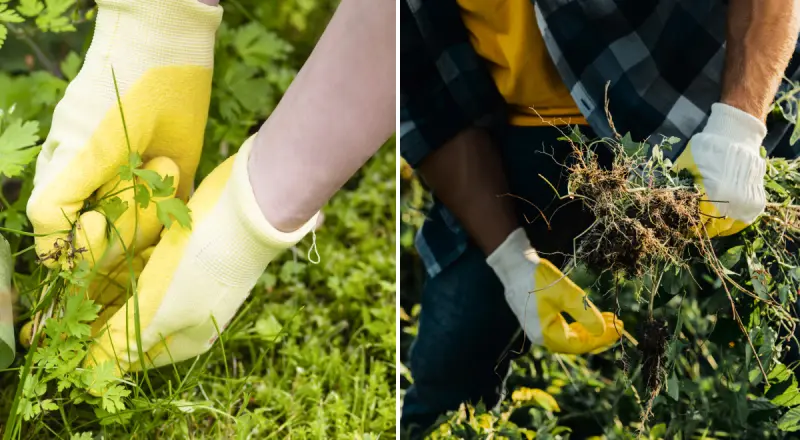 Такие сорняки, как трава Роберта, которые не укореняются глубоко, можно легко удалить вручную, что делает этот метод быстрым и эффективным для небольших объемов прополки.