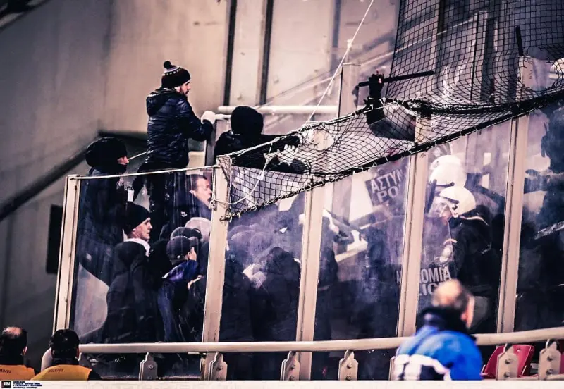 «Замес с полицией» произошел прямо в секторе ультрас "бело-синих" на стадионе Караискакис в Пиреях, сообщается на странице Troublemakers & Ultras Action в Facebook.