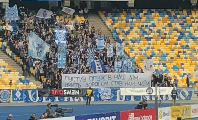 При этом динамовские ультрас также развернули баннер со словами: «Пустив ОПЗЖ в наш дом – вмиг врагом стал нам всем».