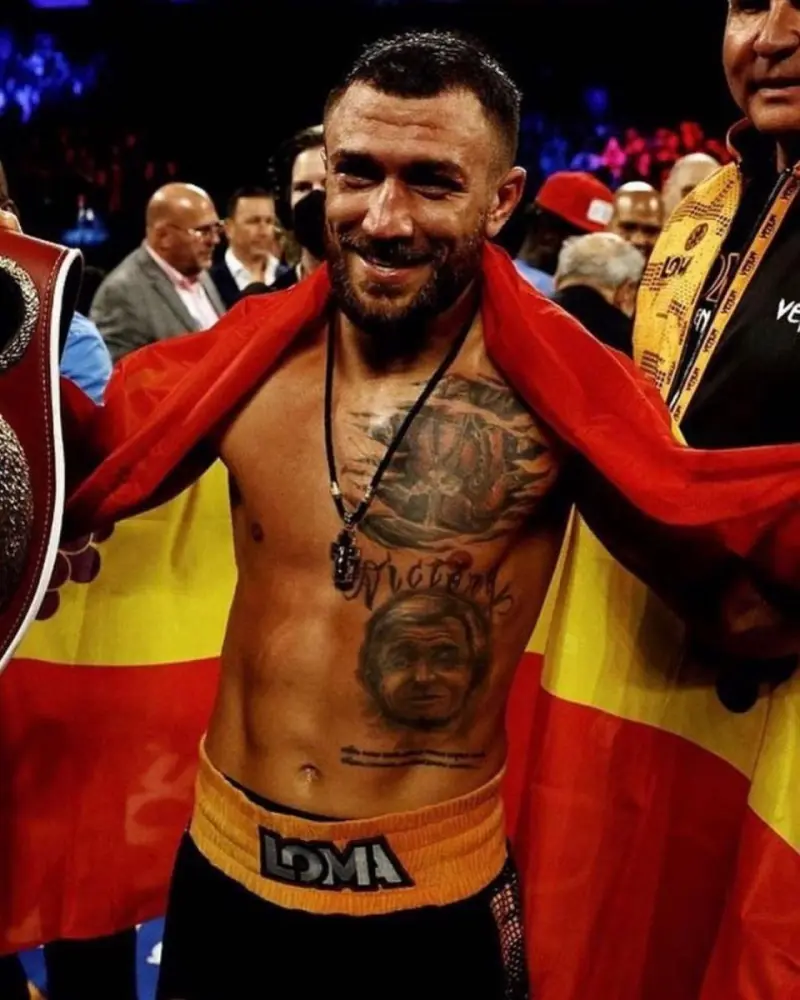 "После победы над Комми Ломаченко набросил на плечи вместо флага Украины флаг Аккермана. "Спасибо, что не кацпский триколор"...