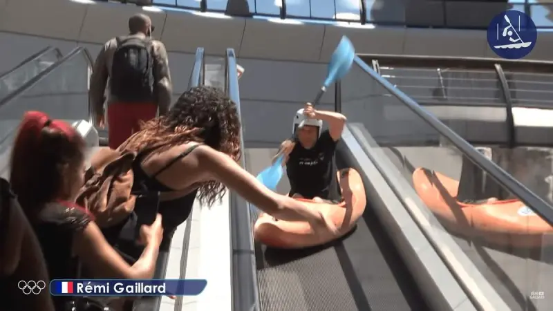 На видео Гайяр делает вид, что фехтует с пасечником, играет в гандбол, борется с пляжником и справляется на байдарке в эскалаторе торгового центра – выглядит эпично, но могло и прилететь несколько раз: люди обычно очень недовольны действиями пранкера.