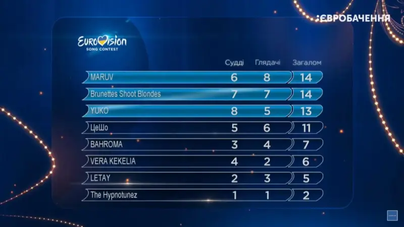 Напомним, в первом полуфинале отбора за «билет» в Израиль боролись восемь конкурсантов: The Hypnotunez, Letay, Vera Kekelia, TseSho, Yuko, Maruv, Brunettes Shoot Blondes и Bahroma.