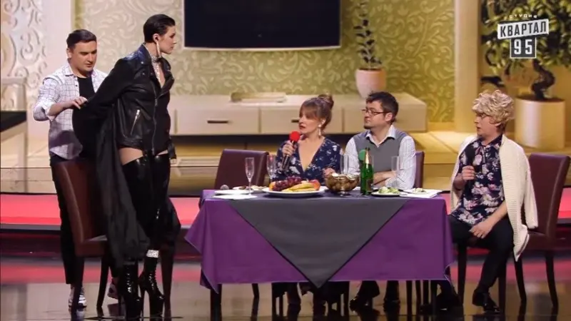 Известная певица Maruv, участие которой в нацотборе на Евровидение закончилось отказом Украины от участия в конкурсе, приняла участие в съемках юмористической передачи Вечерний квартал, где вместе с актерами Квартала95 высмеяла судей и конфликты на конкурсе.