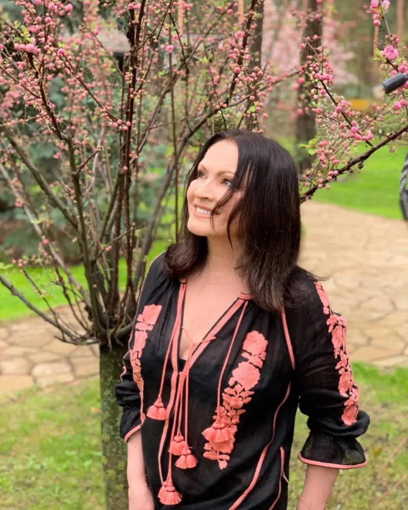 А вот на видео Ротару прогулялась босиком по траве среди цветущих магнолий.