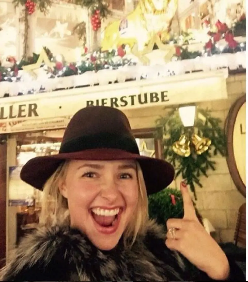Влюбленные купили по стаканчику кофе и пошли на прогулку, о чем-то мило беседуя. Хайден выбрала для прогулки повседневную одежду, отказалась от макияжа, и собрала волосы в беспорядочный пучок.