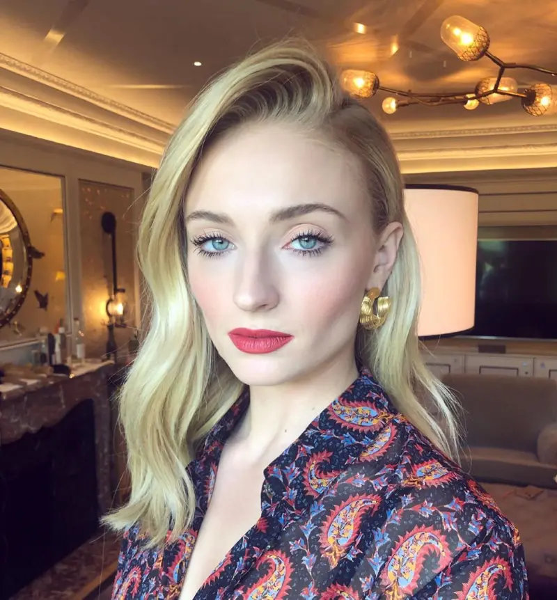 Тернер предстала с более теплым цветом волос - она отказалась от холодного блонда. Кроме того, для появления на премьере фильма Люди Икс: Темный Феникс в Лондоне Софи обрезала челку и подчеркнула свои огромные глаза макияжем в стиле smoky eyes.