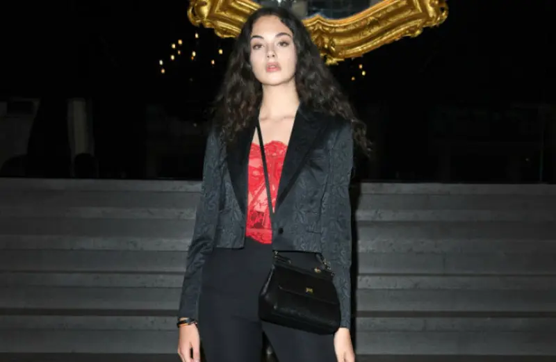 Отметим, 14-летняя модель Дева явилась туда в облегающих брюках черного цвета и пиджаке в тон из атласа. Свой строгий образ дочь звездных родителей дополнила заманчивый красным ажурным топом.