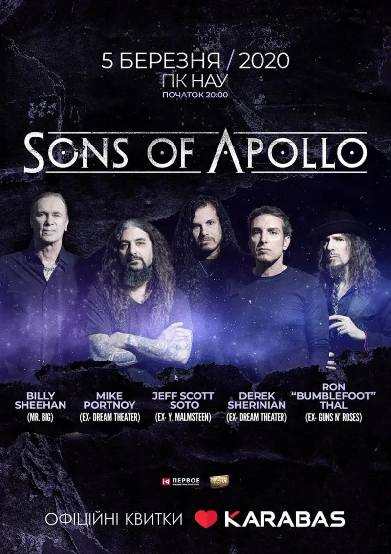 Sons Of Apollo - проект виртуозов, коллектив с большими амбициями и далеко идущими планами. Группу основали экс-участники Dream Theater Майк Портной и Дерек Шериниан, в которую вошли также бас-гитарист Mr. Big и The Winery Dogs Билли Шихэн, вокалист Journey Джефф Скотт-Сото и бывший гитарист Guns N’ Roses Рон Таль.