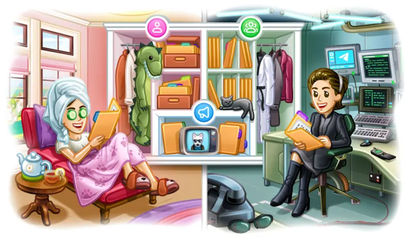 Если ваших чатов стало слишком много, то теперь вы можете рассортировать их по настраиваемым папкам. Их количество неограничено, помещать в них вы тоже можете любые контакты и чаты. Так вы сможете, к примеру, отделить личное общение от рабочих вопросов.