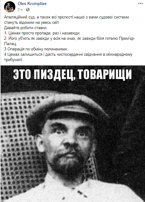 Военный корреспондент Олесь Кромпляс предложил делать ставки, какая судьба ждет Цемаха после освобождения.