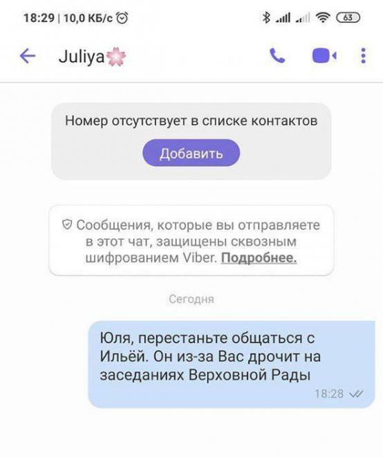 Нашлись и те, кто написал на засвеченный номер Панкратовой, и попросил ее больше не писать Киве и не возбуждать его фантазию: "Юля, перестаньте общаться с Ильей. Он из-за вас дрочит на заседаниях Верховной Рады".