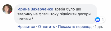 "Нужно было эту тварь повесить на флагштоке вверх ногами", - добавила Ирина Захарченко.