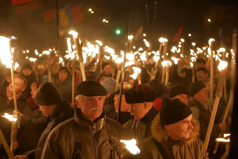 По Киеву 1 января прошло факельное шествие, посвященное 110-летию украинского политического деятеля, лидера и организатора националистического движения Степана Бандеры.