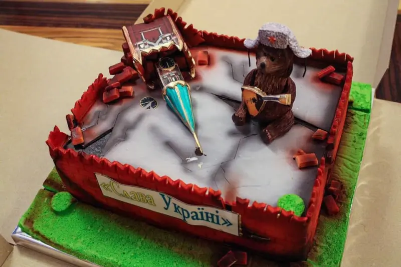 В день своего 40-летия министр инфраструктуры Украины Владимир Омелян получил в подарок торт, который был изготовлен в виде развалин московского Кремля.