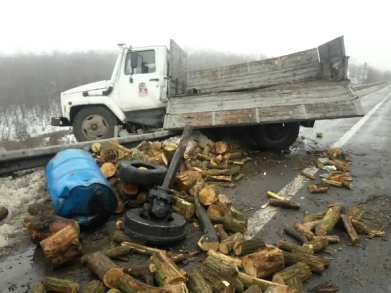 Один из водителей уверяет, что ДТП произошло из-за ямы, в которую влетел один из автомобилей, а затем врезался в отбойник. Водитель второго транспортного средства успел увернуться от столкновения, но машина перевернулась на бок. На место аварии приехала полиция, а уже затем в их служебное авто врезался грузовик с дровами и фура.