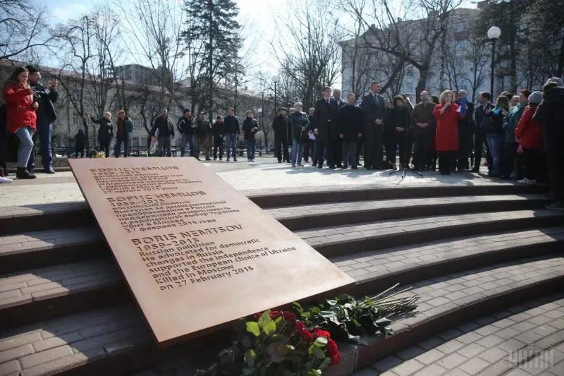 На углу улицы Сурикова и Воздухофлотского проспекта рядом с российским посольством в Киеве открыли сквер имени Бориса Немцова, убитого в Москве в 2015 году.