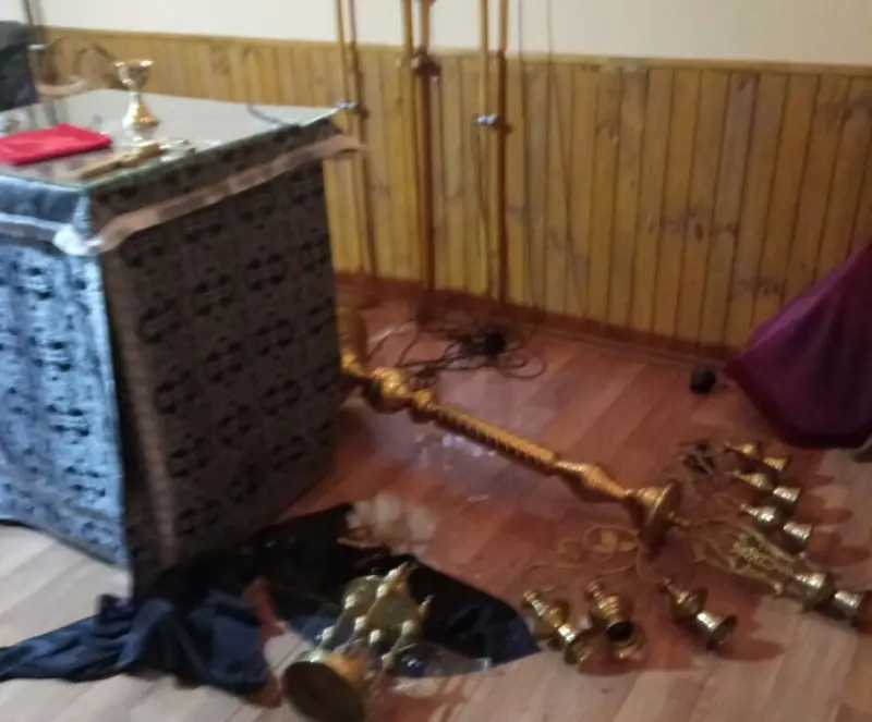Злоумышленники проникли в храм через окно в алтарной части. Они сбросили святые дары с престола, а также повалили семисвечник, сообщает информационно-просветительский отдел УПЦ МП.