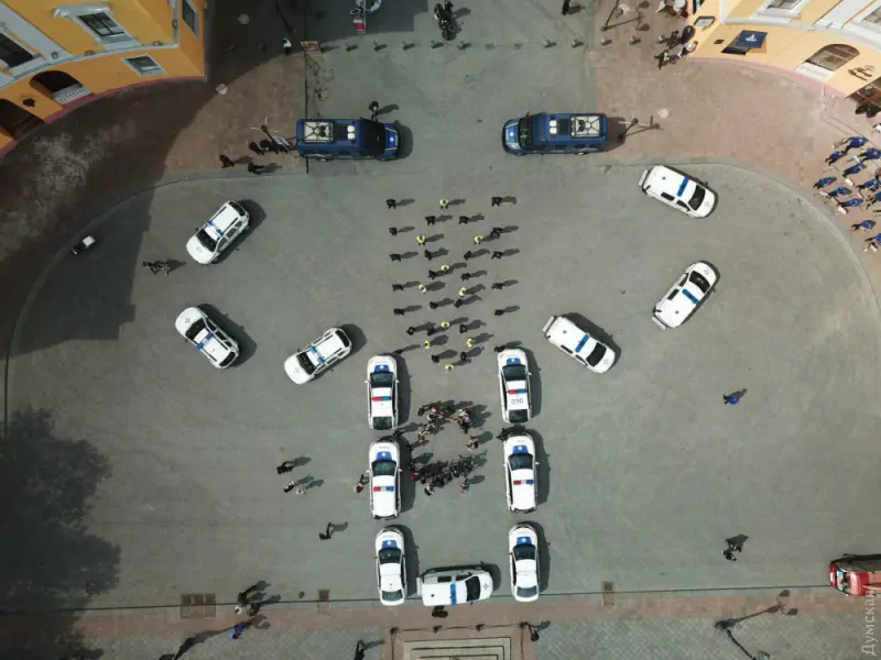 В честь Дня вышиванки 2019 сотрудники патрульной полиции Одессы и военнослужащие Нацгвардии Украины провели специальную патриотическую акцию, расставив служебные машины в форме огромной рубахи, а сами выстроились, изображая вышитый герб Украины.