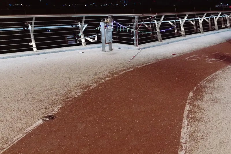 Aleksey Maslo поделился фотографией, на которой видно, что в день открытия моста велодорожка была повреждена.
