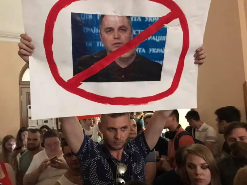 Активисты и студенты Киевского национального университета имени Тараса Шевченко собрались на акцию протеста под стенами красного корпуса вуза по причине назначения экс-заместителя главы Администрации президента времен Януковича Андрея Портнова на должность профессора и восстановления его в должности преподавателя.