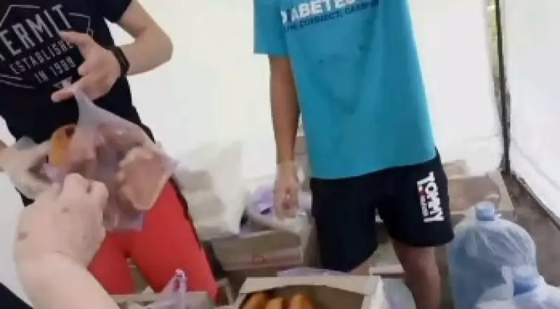 На видео, которое опубликовали в Сети, видно, как в палатках белого цвета людям предлагали печенье и питьевую воду по символической цене.