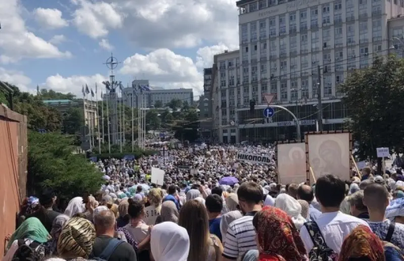 Добавим, что утром в 10:00 люди прихожане УПЦ начали собираться на Владимирской горке. В 13:00 Митрополит Онуфрий провел молебен. В 13:30 начался сам Крестный ход - люди идут от памятника князю Владимиру - в Киево-Печерскую лавру.