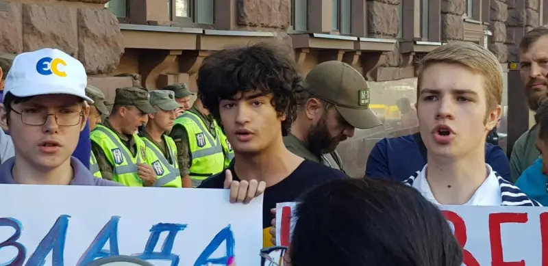 Сын экс-президента Петра Порошенко Михаил ответил на вопросы журналистов во время акций под Госбюро расследований при допросе его родителя.