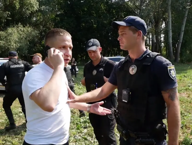 «Я вызвал сюда следственно-оперативную группу, вы слышите или нет? Ало. Я просил следственно-оперативную группу, у нас в Белой Церкви работников полиции как минимум, 3 машины. Я работник Генеральной прокуратуры Украины, и они используют незаконные методы», - сказал мужчина по телефону.