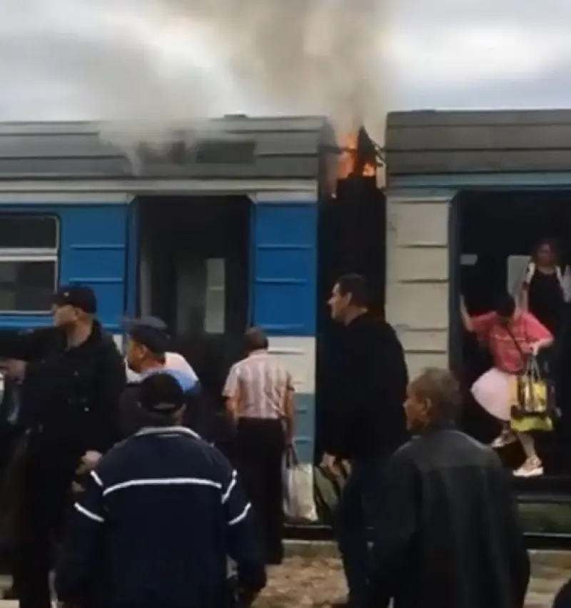 На видео видно, как пылает соединение между вагонами, пассажиры жаловались: дым полностью затянул оба вагона.