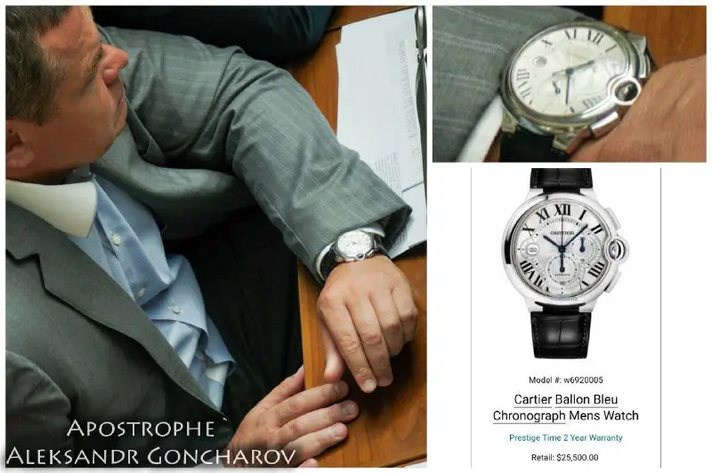 Часы народный избранник выбрал себе баснословно дорогие - от французского Дома по производству часов и ювелирных изделий Cartier - Ballon Bleu Chronograph Men's Watch.