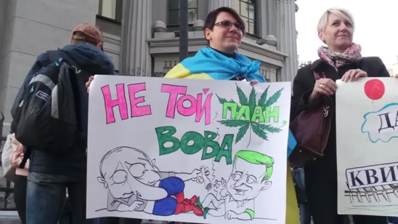 Митингующие требуют выполнять минские договоренности, но с перечнем условий: полное и устойчивое прекращение боевых действий, вывод российских войск и разоружение незаконных формирований, передача границы Украины миротворцам ООН и ОБСЕ, с последующей передачей Украине, проведение выборов по украинским законам.