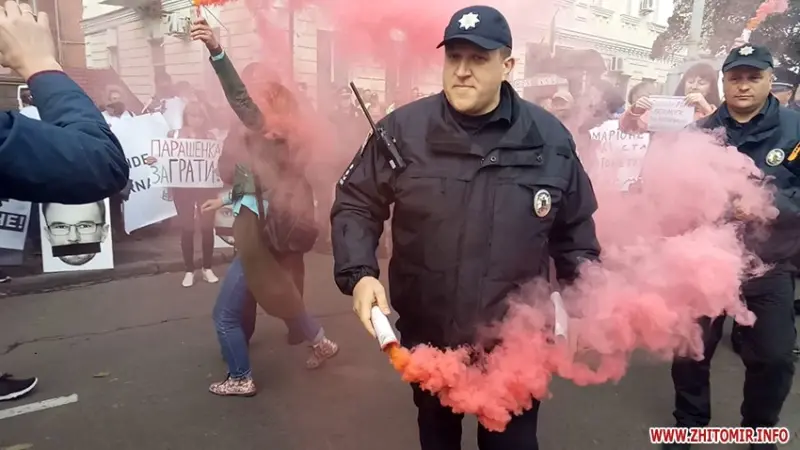 В частности, одна группа активистов протестовала против реализации формулы Штайнмайера по Донбассу. Они держали в руках плакаты «Нет капитуляции!». Некоторые из них в знак протеста зажгли файеры.