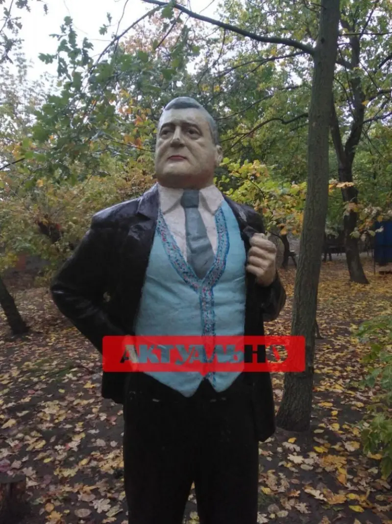В Запорожье в рамках декоммунизации переделали памятник советскому вождю Владимиру Ленину, превратив его в пятого президента Украины Петра Порошенко.