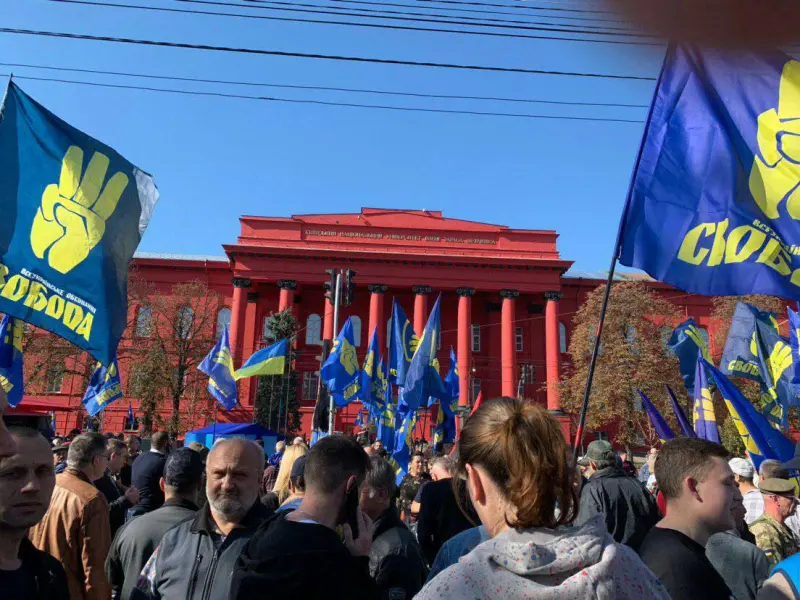 В 13:00 возле памятника Тарасу Шевченко провели митинг, а затем участники пошли по центральным улицам Киева, передает ТСН.