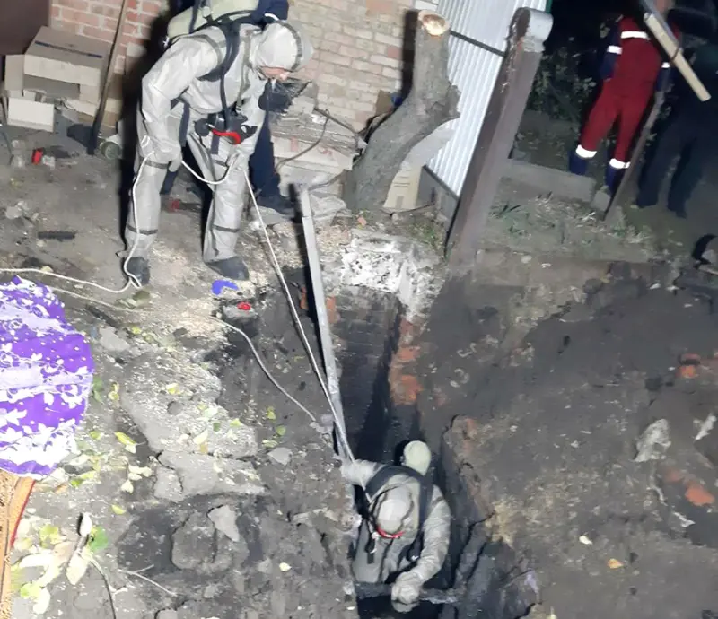 По данным ведомства, спасателям сообщили, что люди погибли в результате несчастного случая во время очистки выгребной ямы. Сотрудники ГСЧС в защитном снаряжении вытащили тела погибших.