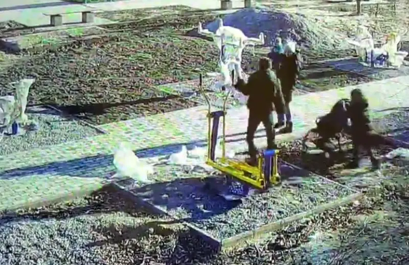 В Житомире психически нездоровый мужчина атаковал женщину с маленьким ребенком на руках, нанеся серьезные побои. Сперва он толкнул ее, а потом стал лупить руками и ногами.