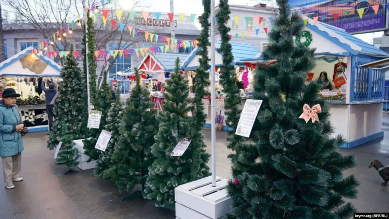 В оккупированном россиянами Симферополе на новогодней ярмарке заметили в продаже новогодние елки, которые производятся на частном предприятии в Ивано-Франковской области.