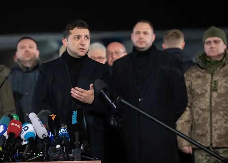 Президент Владимир Зеленский в аэропорту Борисполь после встречи самолета с освобожденными в результате обмена пленными в рамках краткой пресс-конференции заявил, что Украина выполнила условия по итогам саммита в нормандском формате.