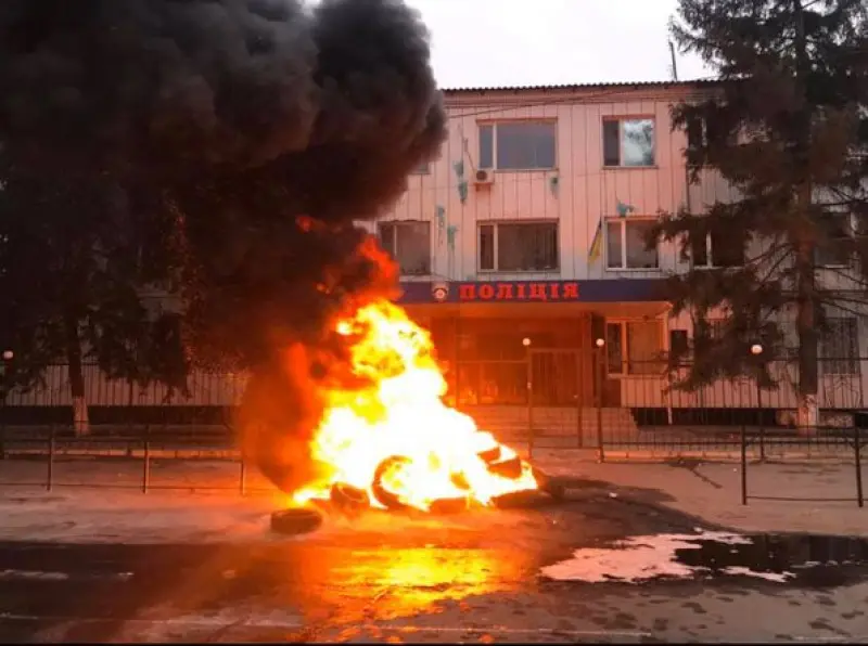 В частности, участники стихийной акции протеста зажгли автомобильные покрышки, а также бросали взрывпакеты и банки с краской в сторону здания райотдела.