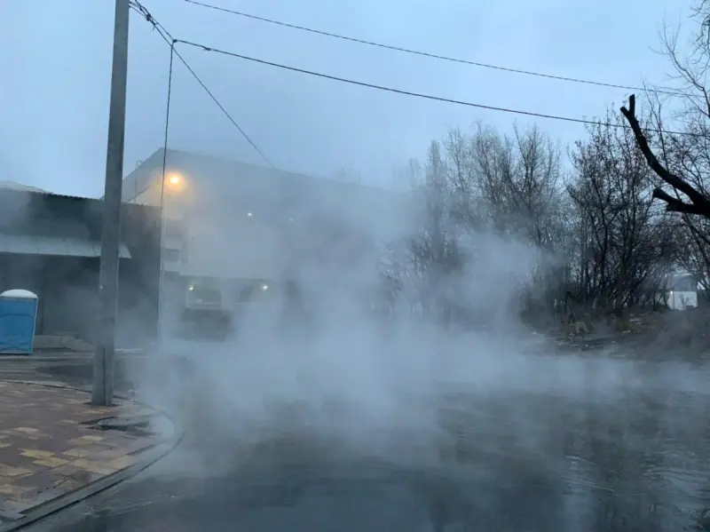 На фотографиях, которые появились в Сети, отчетливо видно, улицы у ЖК Campus укутана паром, а из-под асфальта выливается кипяток.