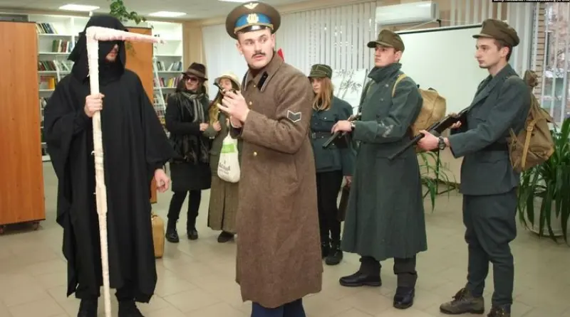 В Славянске Донецкой области показали оригинальный "повстанческий" вертеп. Героями представления были "Сталин", "черт" из НКВД, "звезда", украинские повстанцы и другие персонажи.