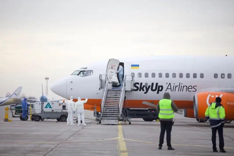 Літак авіакомпанії SkyUP, на якому були евакуйовані громадяни України з охопленого епідемією коронавіруса Китаю, приземлився в аеропорту Бориспіль.