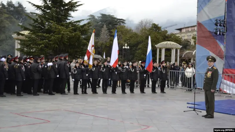 В «жемчужине» аннексированного Крыма Ялте к российскому Дню защитника отечества, который празднуют в РФ 23 февраля, власти устроили военный парад с участием преимущественно детей.