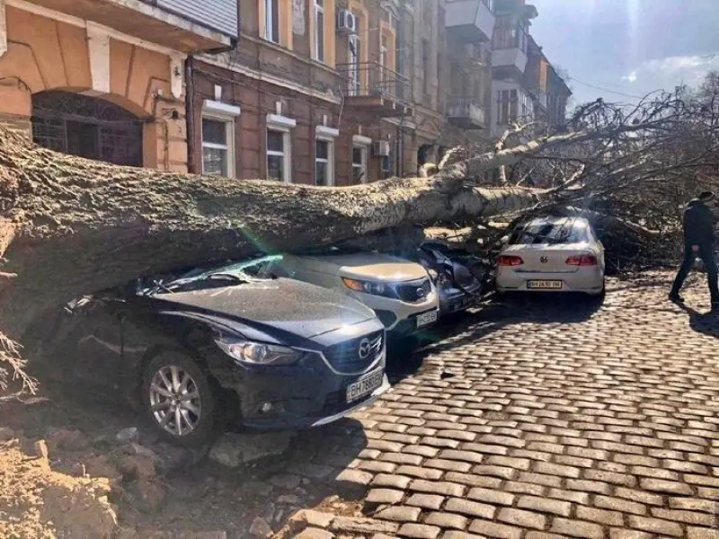 На Большой Арнаутской ветер оторвал фрагмент балкона, а на Маразлиевской отвалившийся от дома кусок лепнины упал на автомобиль «Хюндай Соната». Водитель был в салоне, но, к счастью, не пострадал. Повреждено лобовое стекло.