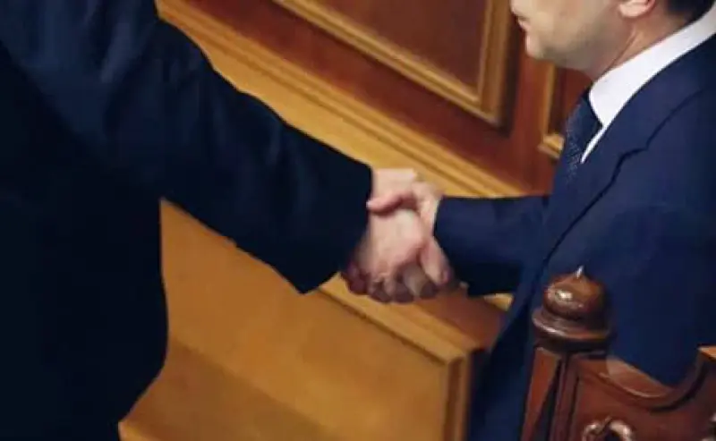 Чуть позже в президиум вышел Порошенко. Сначала он слушал разговор, а затем подошел к Зеленскому и несколько минут с ним разговаривал. О чем говорили политики – остается неизвестным. Но на видео видно, что после беседы они обменялись рукопожатием.