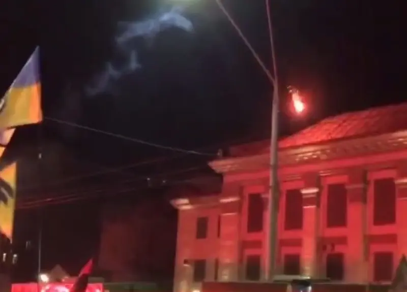 Під час акції хто з учасників вистрілив по посольству Росії з ракетниці.