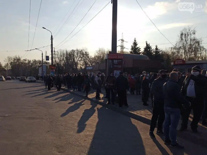 У Кривому Розі тисячі робочих АрселорМіттал Кривий Ріг вишикувалися в довжелезну чергу біля прохідної за "спеціальною перепусткою" для проїзду в громадському транспорті.