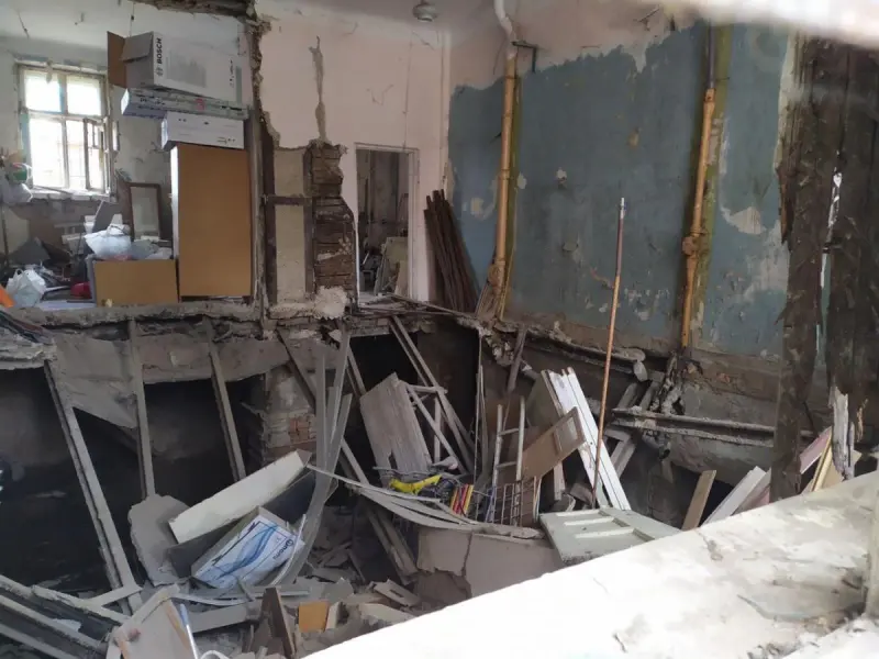 Существует опасность обрушения 2 и 3 этажей, где находятся квартиры жильцов.