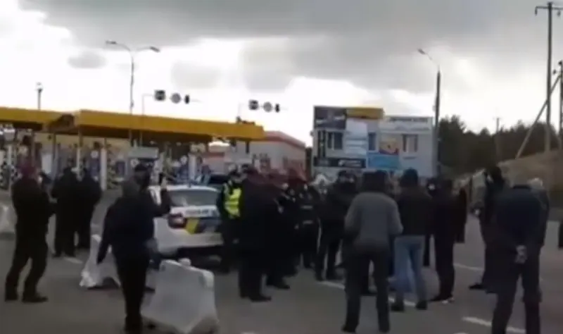Кілька десятків незадоволених українців заблокували трасу і вимагали дозволити їм відправитися додому на самоізоляцію.