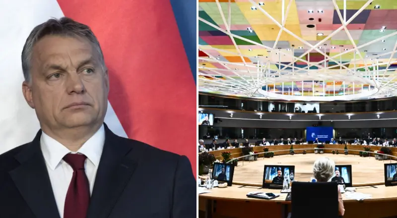 Виктор Орбан, премьер-министр Венгрии, покинул зал во время голосования за решение об открытии переговоров о вступлении Украины в Европейский Союз.